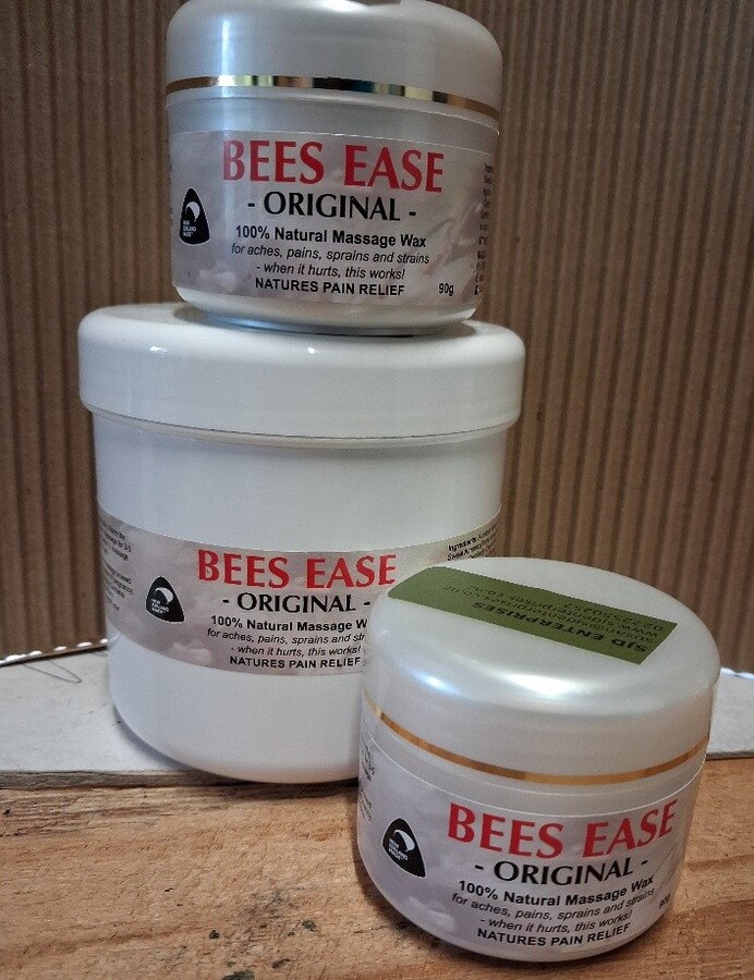 Duzz-All Bees Ease is a 100 percent natural blend of essential oils, that were specially selected to reduce pain, inflammation, swelling, stiffness, help stimulate circulation, helping to promote healing. Suitable for arthritis, back pain, neck and shoulder pain, tendonitis, cramp or injuries. New Zealand made. Available in two sizes, 90gm and 500gm (600ML POT)